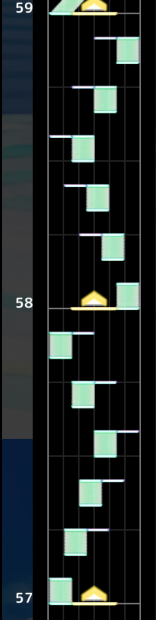 82小節目〜(4回目のラッシュ)は縦連の認識もしづらくなり、同時押しも厄介な位置に増えて超強化されました。辛いです。